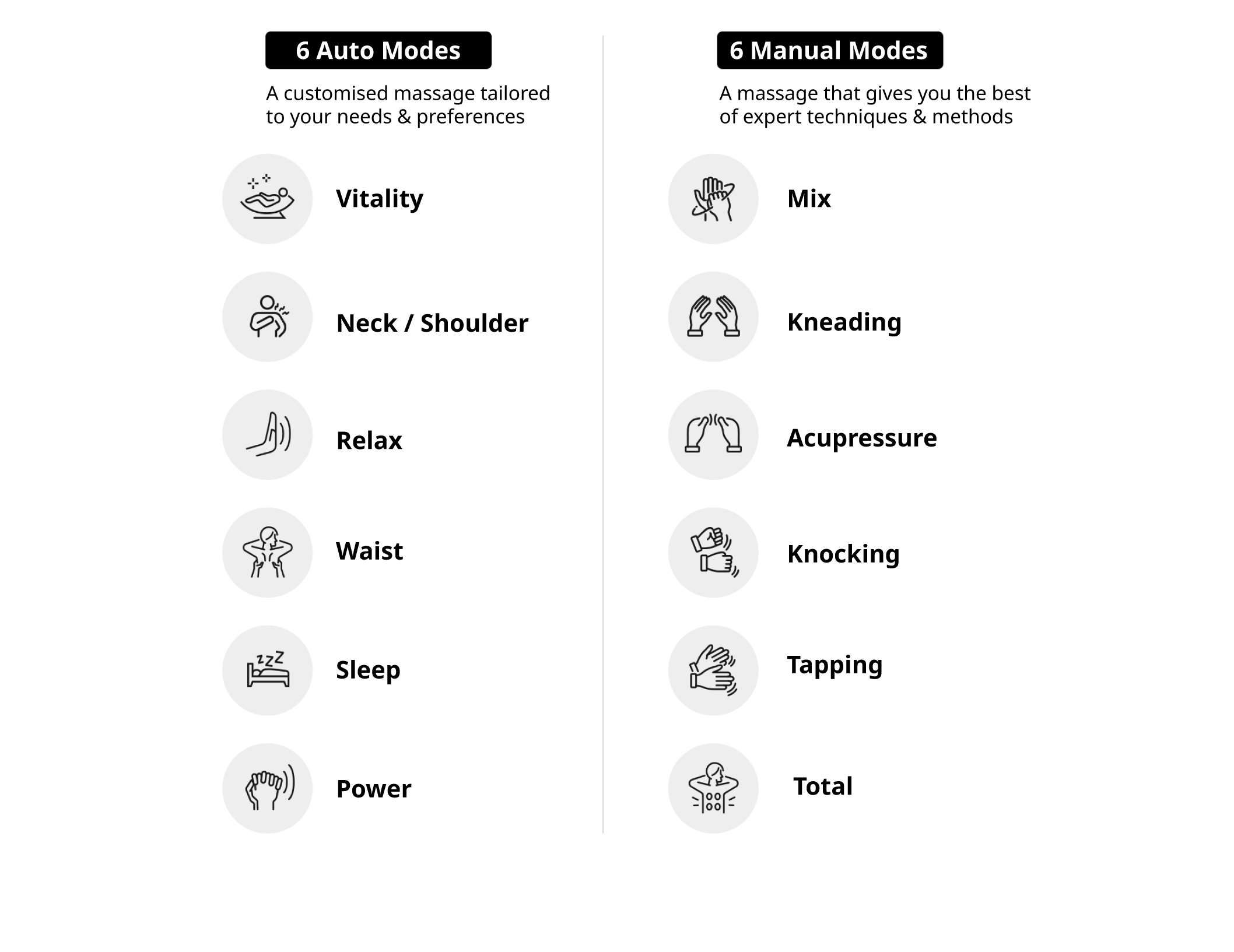 Gentle warmth for thorough relief of a sore lower back & hips, complemented by a firm airbag massage.